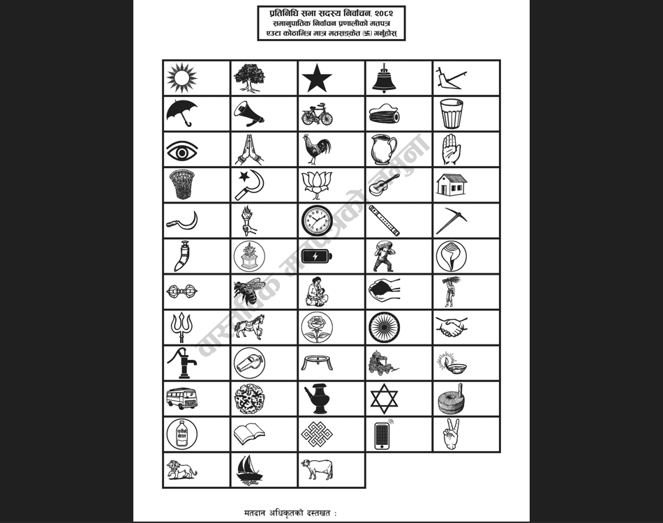 निर्वाचन आयोगका प्रवक्ता नारायणप्रसाद भट्टराईका अनुसार उम्मेदवारको सङ्ख्याका आधारमा पनि मतपत्रको नमूना तयार पारिएको छ ।